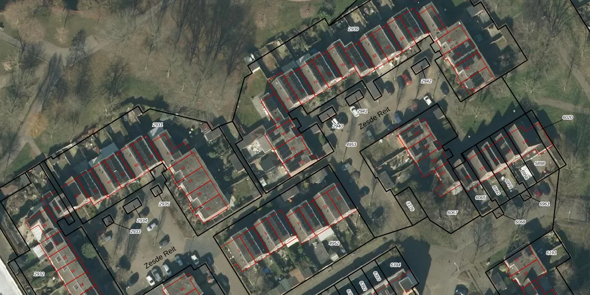 Het perceel waarop Zesde Reit 64 staat heeft een oppervlakte van 2915 m². Dit is een zeer groot perceel. De perceeloppervlakte wordt geregistreerd door het Kadaster. Gedetailleerde informatie over de maten van dit perceel kunt u vinden in het rapport Kadastrale kaart met maatvoering van Zesde Reit 64.