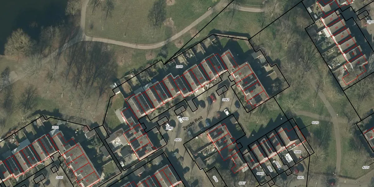 Het perceel waarop Zesde Reit 80 staat heeft een oppervlakte van 2915 m². Dit is een zeer groot perceel. De perceeloppervlakte wordt geregistreerd door het Kadaster. Gedetailleerde informatie over de maten van dit perceel kunt u vinden in het rapport Kadastrale kaart met maatvoering van Zesde Reit 80.