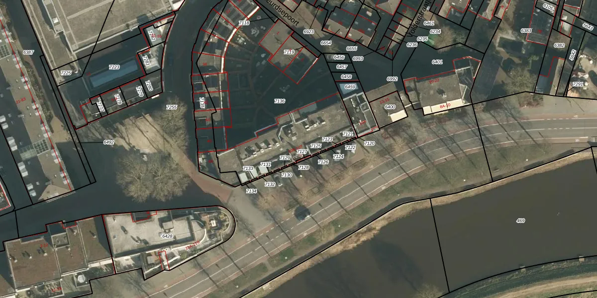 Het perceel waarop Zuidwal 10-B staat heeft een oppervlakte van 2087 m². Dit is een zeer groot perceel. De perceeloppervlakte wordt geregistreerd door het Kadaster. Gedetailleerde informatie over de maten van dit perceel kunt u vinden in het rapport Kadastrale kaart met maatvoering van Zuidwal 10-B.