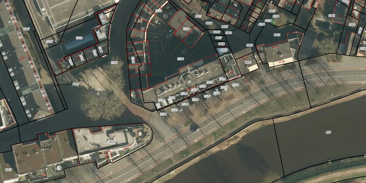 Het perceel waarop Zuidwal 10-F staat heeft een oppervlakte van 2087 m². Dit is een zeer groot perceel. De perceeloppervlakte wordt geregistreerd door het Kadaster. Gedetailleerde informatie over de maten van dit perceel kunt u vinden in het rapport Kadastrale kaart met maatvoering van Zuidwal 10-F.