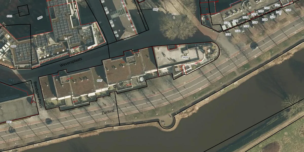 Het perceel waarop Zuidwal 12 staat heeft een oppervlakte van 1790 m². Dit is een zeer groot perceel. De perceeloppervlakte wordt geregistreerd door het Kadaster. Gedetailleerde informatie over de maten van dit perceel kunt u vinden in het rapport Kadastrale kaart met maatvoering van Zuidwal 12.