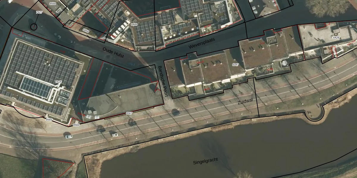 Het perceel waarop Zuidwal 45 staat heeft een oppervlakte van 1790 m². Dit is een zeer groot perceel. De perceeloppervlakte wordt geregistreerd door het Kadaster. Gedetailleerde informatie over de maten van dit perceel kunt u vinden in het rapport Kadastrale kaart met maatvoering van Zuidwal 45.