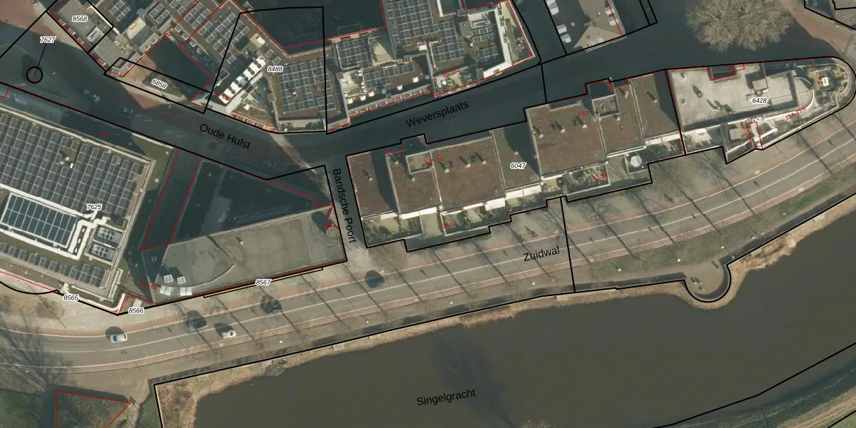 Het perceel waarop Zuidwal 50 staat heeft een oppervlakte van 1790 m². Dit is een zeer groot perceel. De perceeloppervlakte wordt geregistreerd door het Kadaster. Gedetailleerde informatie over de maten van dit perceel kunt u vinden in het rapport Kadastrale kaart met maatvoering van Zuidwal 50.