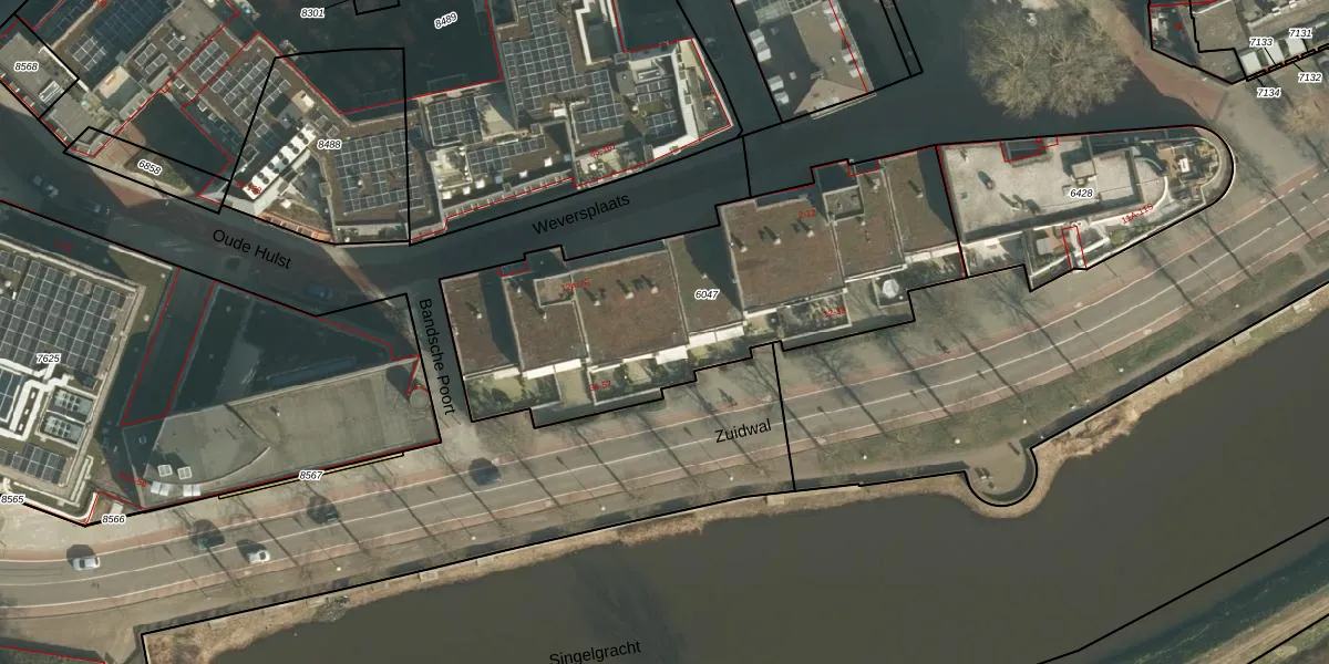 Het perceel waarop Zuidwal 52 staat heeft een oppervlakte van 1790 m². Dit is een zeer groot perceel. De perceeloppervlakte wordt geregistreerd door het Kadaster. Gedetailleerde informatie over de maten van dit perceel kunt u vinden in het rapport Kadastrale kaart met maatvoering van Zuidwal 52.