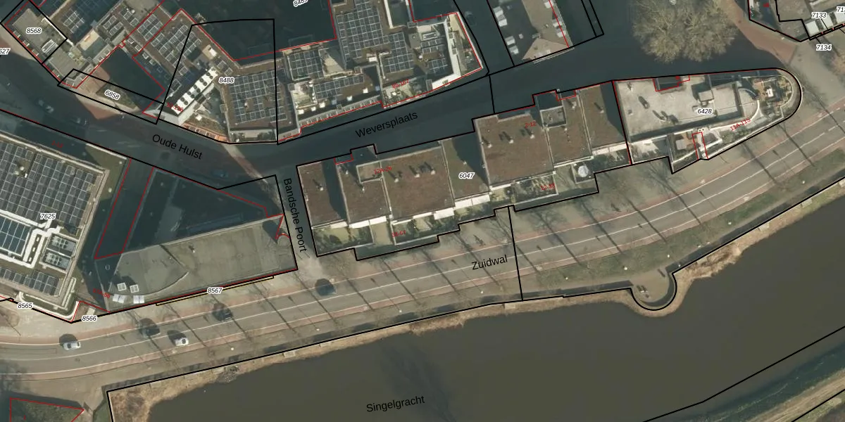 Het perceel waarop Zuidwal 53 staat heeft een oppervlakte van 1790 m². Dit is een zeer groot perceel. De perceeloppervlakte wordt geregistreerd door het Kadaster. Gedetailleerde informatie over de maten van dit perceel kunt u vinden in het rapport Kadastrale kaart met maatvoering van Zuidwal 53.