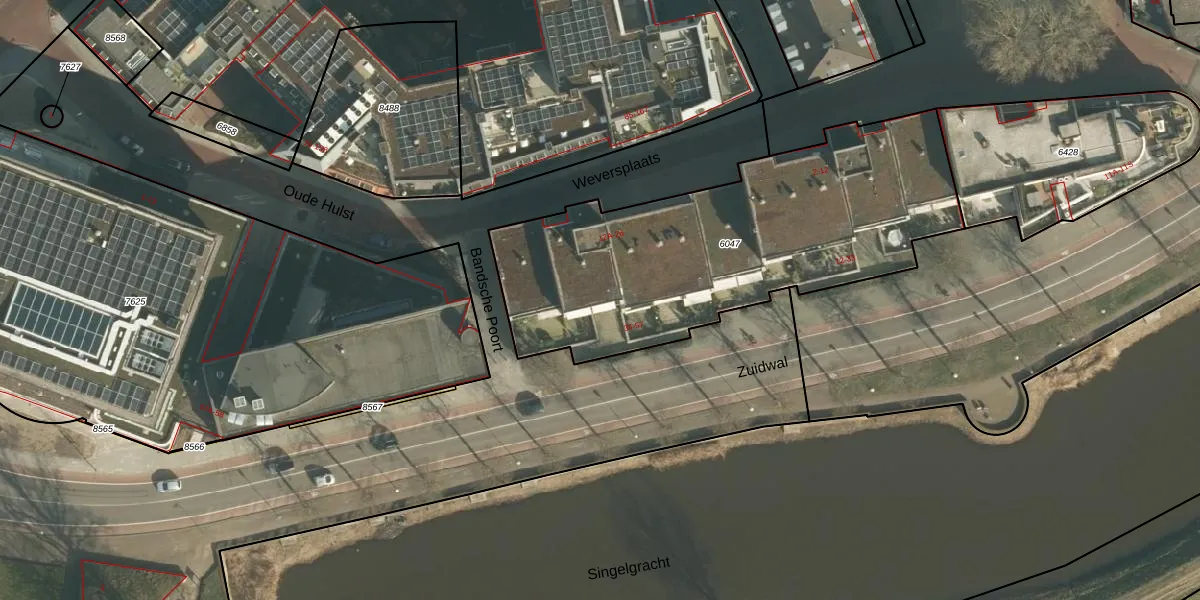 Het perceel waarop Zuidwal 57 staat heeft een oppervlakte van 1790 m². Dit is een zeer groot perceel. De perceeloppervlakte wordt geregistreerd door het Kadaster. Gedetailleerde informatie over de maten van dit perceel kunt u vinden in het rapport Kadastrale kaart met maatvoering van Zuidwal 57.