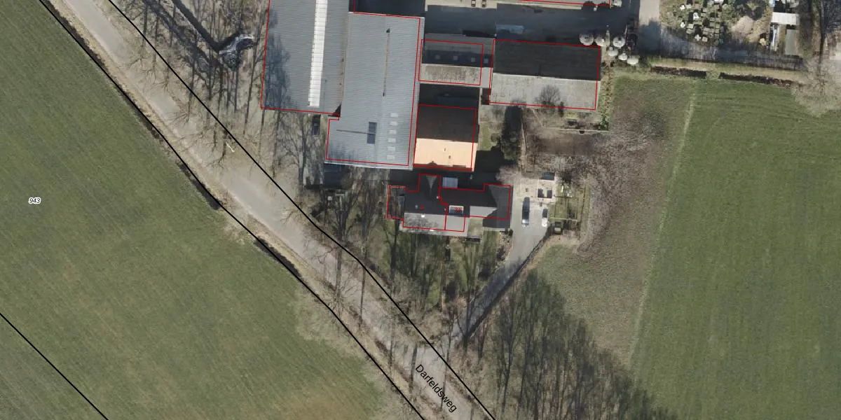 Het perceel waarop Darfeldsweg 3 staat heeft een oppervlakte van 11,2 ha. Dit is een zeer groot perceel. De perceeloppervlakte wordt geregistreerd door het Kadaster. Gedetailleerde informatie over de maten van dit perceel kunt u vinden in het rapport Kadastrale kaart met maatvoering van Darfeldsweg 3.