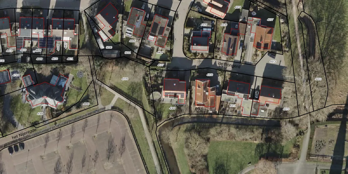 Het perceel waarop de Bongerd 2 staat heeft een oppervlakte van 603 m². Dit is een groot perceel. De perceeloppervlakte wordt geregistreerd door het Kadaster. Gedetailleerde informatie over de maten van dit perceel kunt u vinden in het rapport Kadastrale kaart met maatvoering van de Bongerd 2.