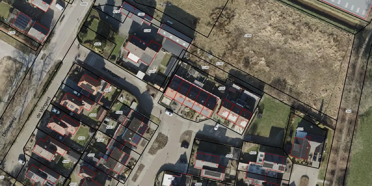 Het perceel waarop de Hagen 30 staat heeft een oppervlakte van 1194 m². Dit is een zeer groot perceel. De perceeloppervlakte wordt geregistreerd door het Kadaster. Gedetailleerde informatie over de maten van dit perceel kunt u vinden in het rapport Kadastrale kaart met maatvoering van de Hagen 30.