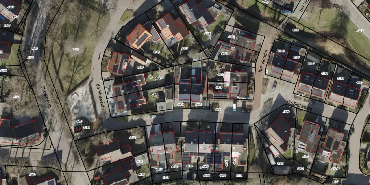 Het perceel waarop de Slotweide 7 staat heeft een oppervlakte van 214 m². Dit is een middelgroot perceel. De perceeloppervlakte wordt geregistreerd door het Kadaster. Gedetailleerde informatie over de maten van dit perceel kunt u vinden in het rapport Kadastrale kaart met maatvoering van de Slotweide 7.