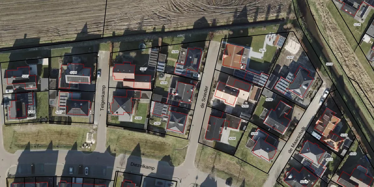 Het perceel waarop de Snieder 9 staat heeft een oppervlakte van 385 m². Dit is een groot perceel. De perceeloppervlakte wordt geregistreerd door het Kadaster. Gedetailleerde informatie over de maten van dit perceel kunt u vinden in het rapport Kadastrale kaart met maatvoering van de Snieder 9.