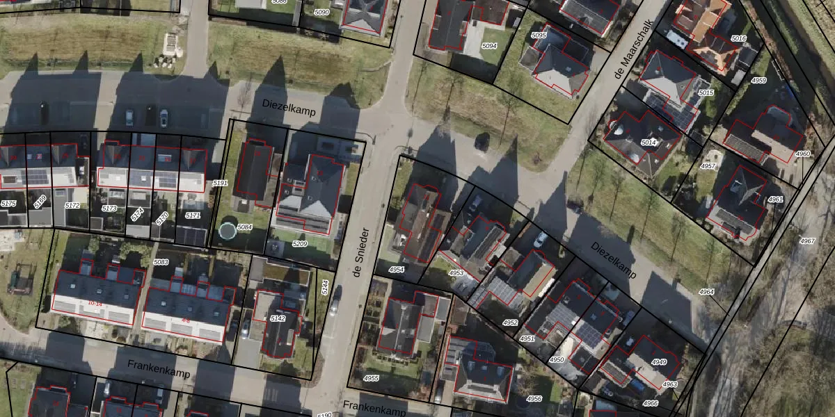 Het perceel waarop Diezelkamp 11 staat heeft een oppervlakte van 431 m². Dit is een groot perceel. De perceeloppervlakte wordt geregistreerd door het Kadaster. Gedetailleerde informatie over de maten van dit perceel kunt u vinden in het rapport Kadastrale kaart met maatvoering van Diezelkamp 11.