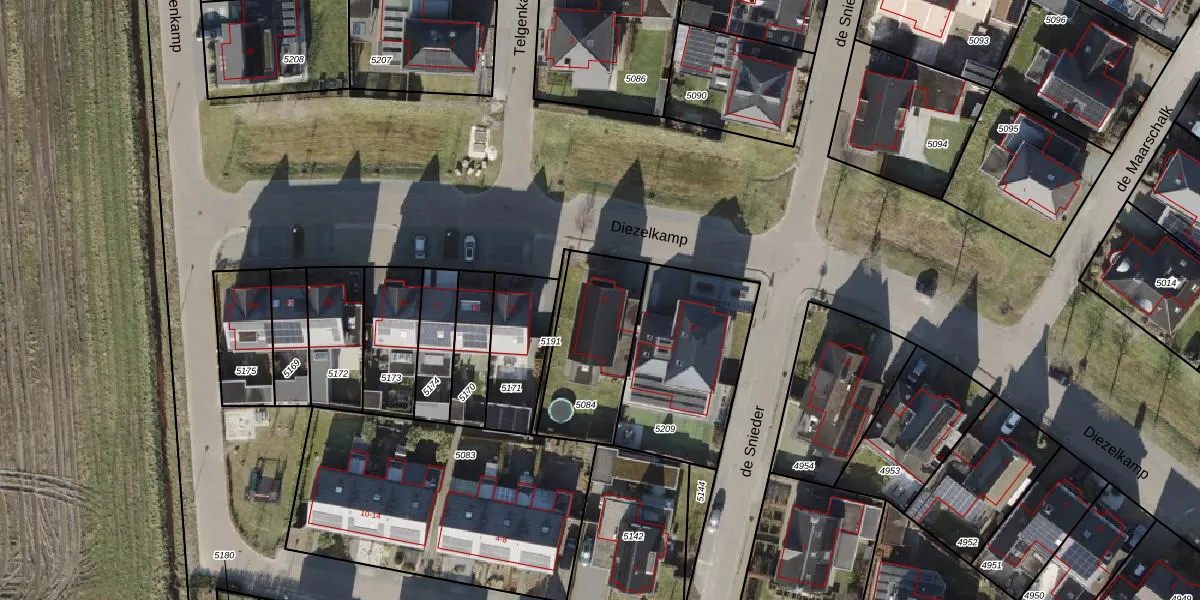 Het perceel waarop Diezelkamp 15 staat heeft een oppervlakte van 405 m². Dit is een groot perceel. De perceeloppervlakte wordt geregistreerd door het Kadaster. Gedetailleerde informatie over de maten van dit perceel kunt u vinden in het rapport Kadastrale kaart met maatvoering van Diezelkamp 15.