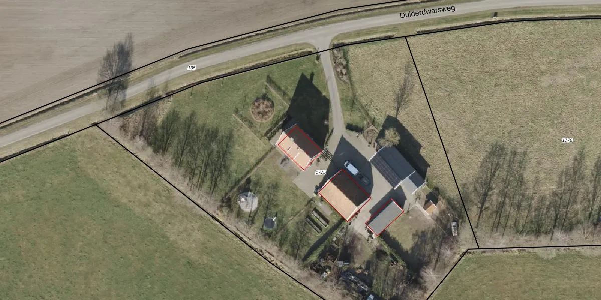 Dulderdwarsweg 2 is gelegen op kadastraal perceel WSL02T1775. Deze kadastrale aanduiding is uniek en wordt gebruikt door het Kadaster om eigendomsrechten en andere zakelijke rechten vast te leggen. Het perceel maakt onderdeel uit van de kadastrale gemeente Weerselo.