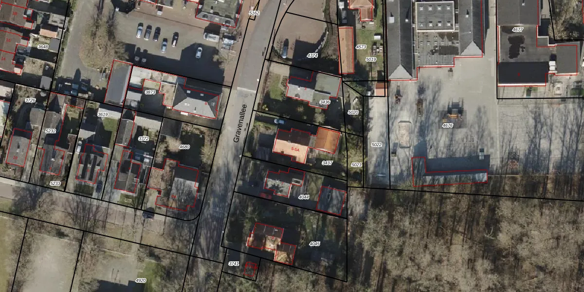 Het perceel waarop Gravenallee 5 staat heeft een oppervlakte van 560 m². Dit is een groot perceel. De perceeloppervlakte wordt geregistreerd door het Kadaster. Gedetailleerde informatie over de maten van dit perceel kunt u vinden in het rapport Kadastrale kaart met maatvoering van Gravenallee 5.