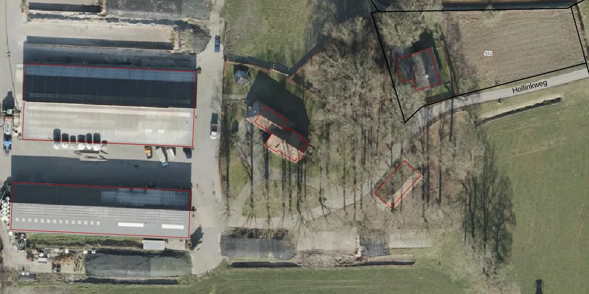 Het perceel waarop Hollinkweg 4 staat heeft een oppervlakte van 13,4 ha. Dit is een zeer groot perceel. De perceeloppervlakte wordt geregistreerd door het Kadaster. Gedetailleerde informatie over de maten van dit perceel kunt u vinden in het rapport Kadastrale kaart met maatvoering van Hollinkweg 4.