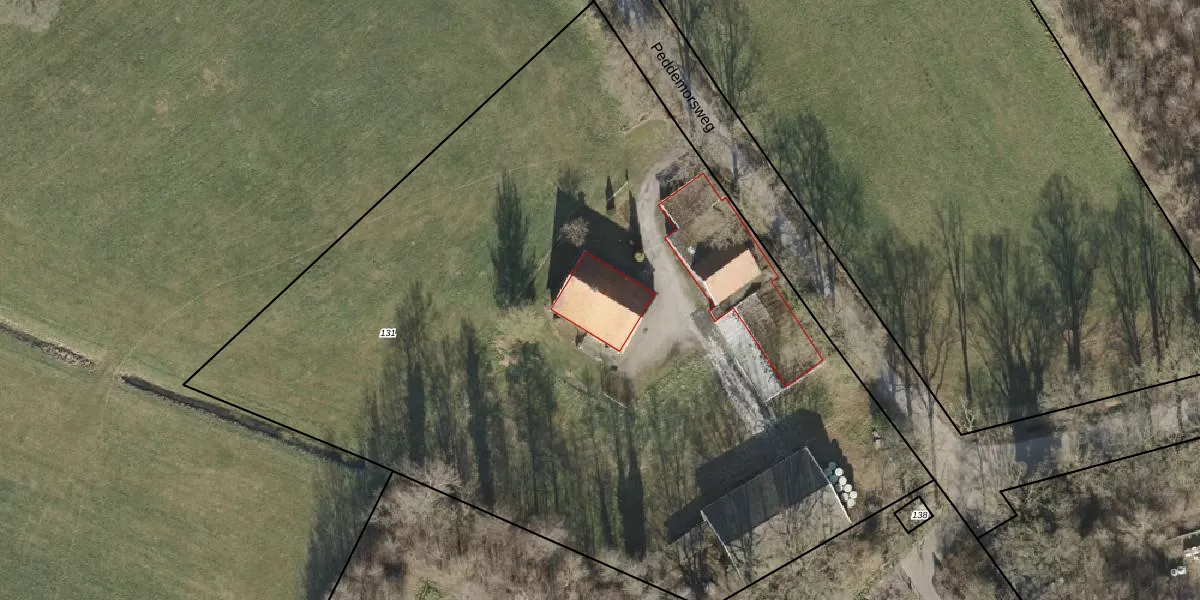 Het perceel waarop Peddemorsweg 1 staat heeft een oppervlakte van 6125 m². Dit is een zeer groot perceel. De perceeloppervlakte wordt geregistreerd door het Kadaster. Gedetailleerde informatie over de maten van dit perceel kunt u vinden in het rapport Kadastrale kaart met maatvoering van Peddemorsweg 1.