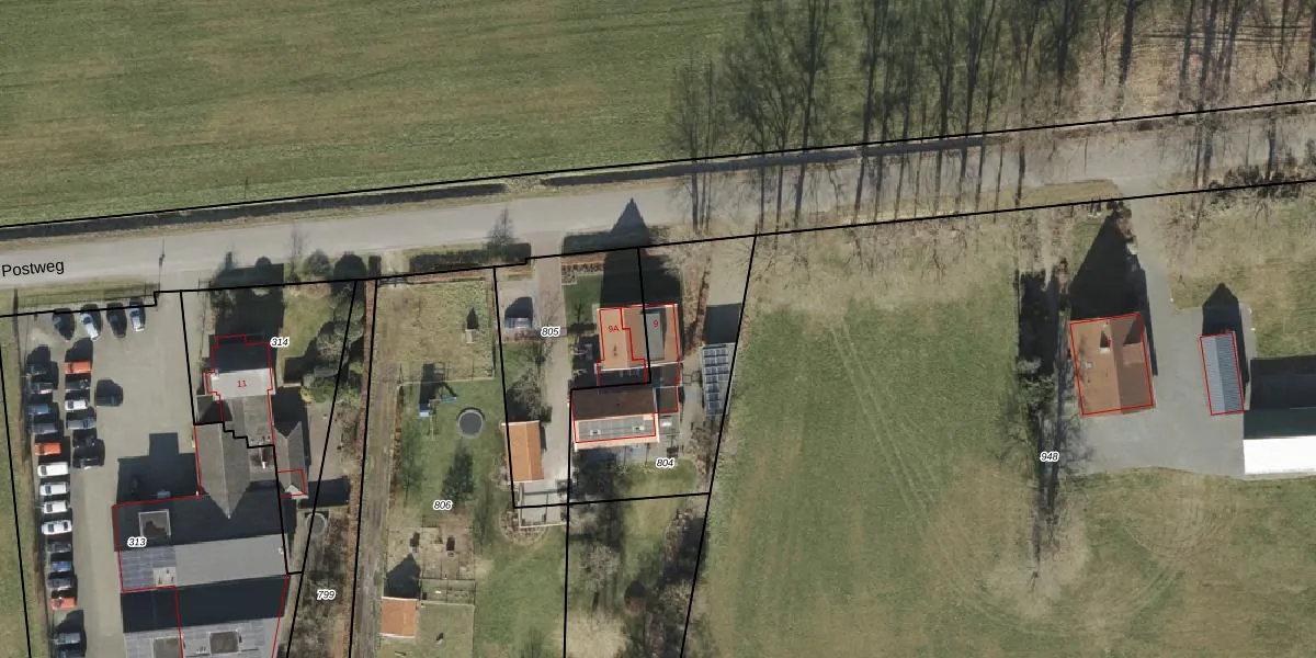 Postweg 9 is gelegen op kadastraal perceel WSL02W804. Deze kadastrale aanduiding is uniek en wordt gebruikt door het Kadaster om eigendomsrechten en andere zakelijke rechten vast te leggen. Het perceel maakt onderdeel uit van de kadastrale gemeente Weerselo.