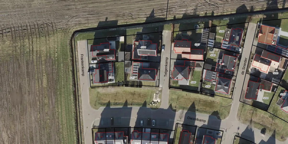 Het perceel waarop Telgenkamp 1 staat heeft een oppervlakte van 413 m². Dit is een groot perceel. De perceeloppervlakte wordt geregistreerd door het Kadaster. Gedetailleerde informatie over de maten van dit perceel kunt u vinden in het rapport Kadastrale kaart met maatvoering van Telgenkamp 1.
