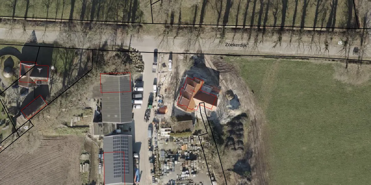 Het perceel waarop Zoekerdijk 7 staat heeft een oppervlakte van 5,0 ha. Dit is een zeer groot perceel. De perceeloppervlakte wordt geregistreerd door het Kadaster. Gedetailleerde informatie over de maten van dit perceel kunt u vinden in het rapport Kadastrale kaart met maatvoering van Zoekerdijk 7.