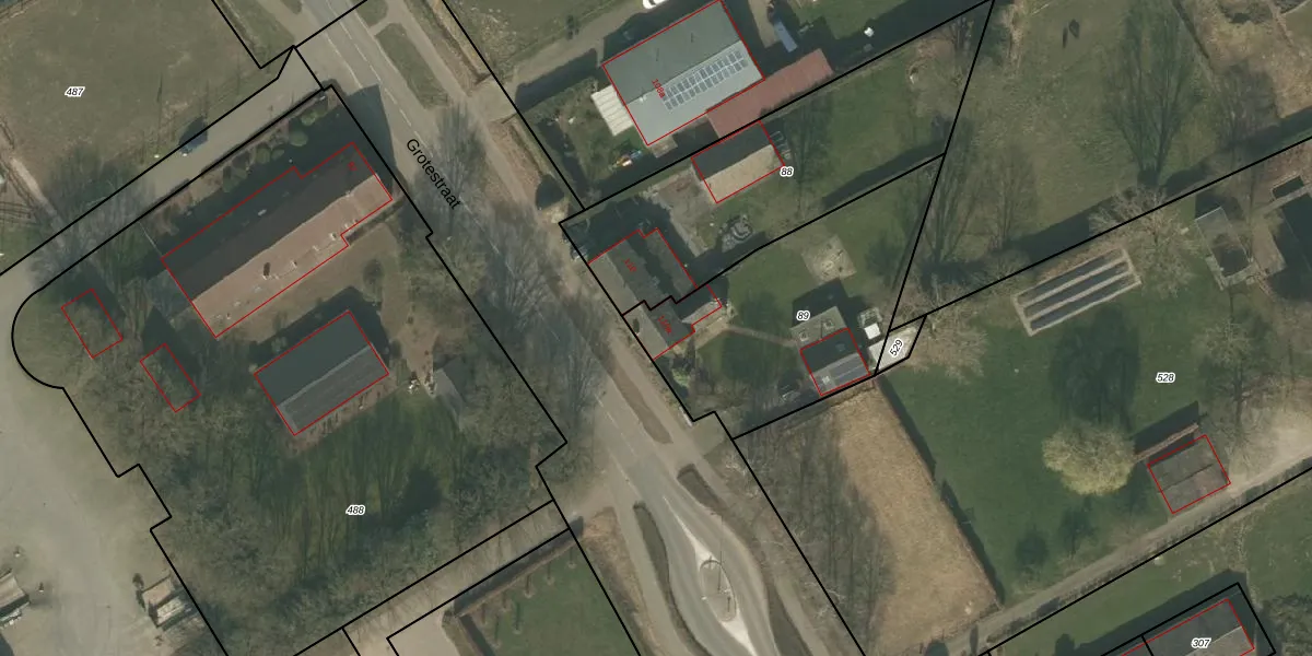 Het perceel waarop Grotestraat 110-a staat heeft een oppervlakte van 989 m². Dit is een groot perceel. De perceeloppervlakte wordt geregistreerd door het Kadaster. Gedetailleerde informatie over de maten van dit perceel kunt u vinden in het rapport Kadastrale kaart met maatvoering van Grotestraat 110-a.
