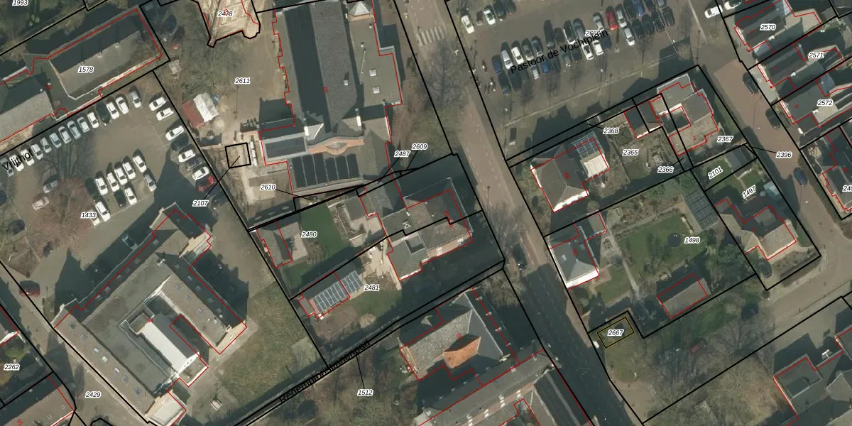 Grotestraat 67 is gelegen op kadastraal perceel BMR00K2480. Deze kadastrale aanduiding is uniek en wordt gebruikt door het Kadaster om eigendomsrechten en andere zakelijke rechten vast te leggen. Het perceel maakt onderdeel uit van de kadastrale gemeente Boxmeer.