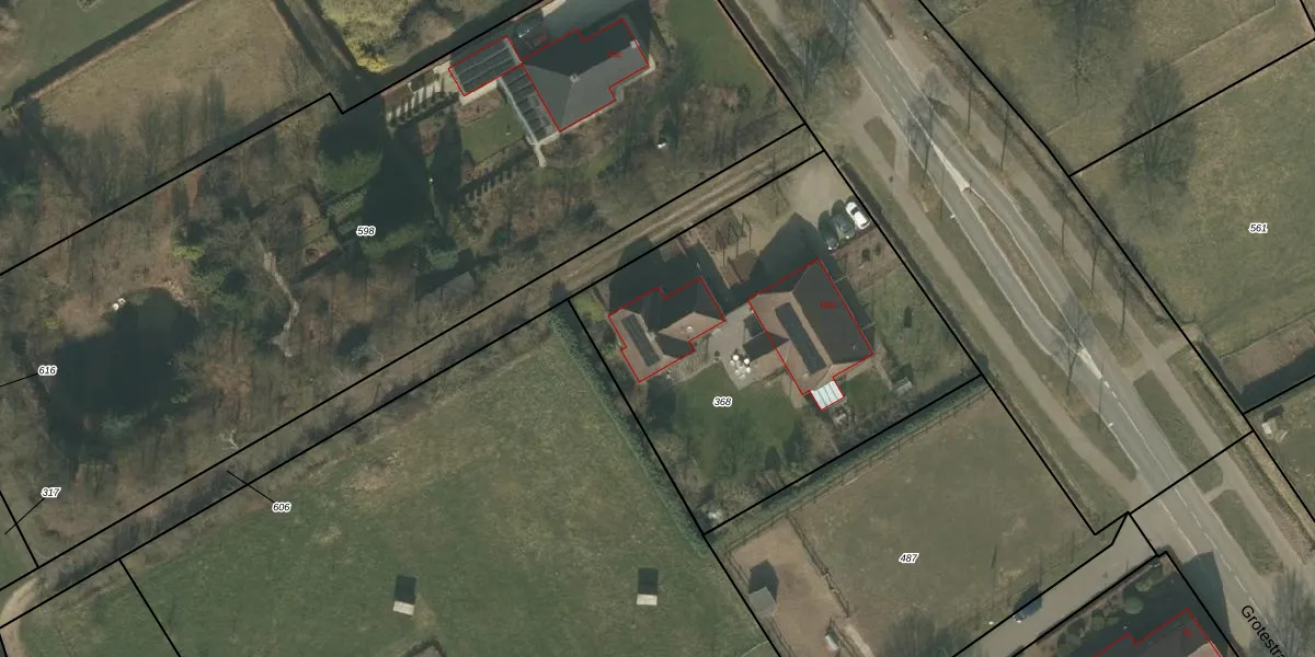 Het perceel waarop Grotestraat 95-b staat heeft een oppervlakte van 1949 m². Dit is een zeer groot perceel. De perceeloppervlakte wordt geregistreerd door het Kadaster. Gedetailleerde informatie over de maten van dit perceel kunt u vinden in het rapport Kadastrale kaart met maatvoering van Grotestraat 95-b.