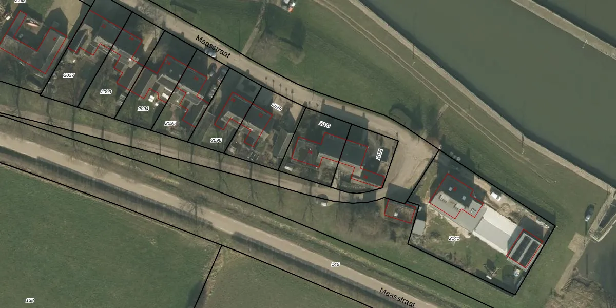 Maasstraat 24 is gelegen op kadastraal perceel BMR00K2030. Deze kadastrale aanduiding is uniek en wordt gebruikt door het Kadaster om eigendomsrechten en andere zakelijke rechten vast te leggen. Het perceel maakt onderdeel uit van de kadastrale gemeente Boxmeer.