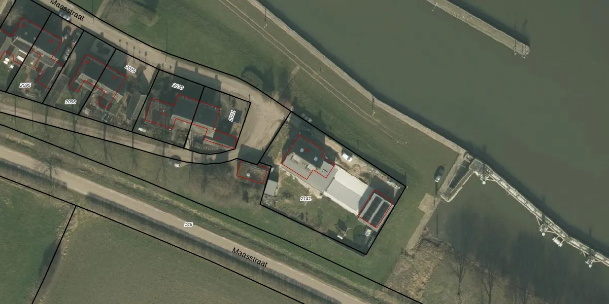 Maasstraat 30 is gelegen op kadastraal perceel BMR00K2141. Deze kadastrale aanduiding is uniek en wordt gebruikt door het Kadaster om eigendomsrechten en andere zakelijke rechten vast te leggen. Het perceel maakt onderdeel uit van de kadastrale gemeente Boxmeer.