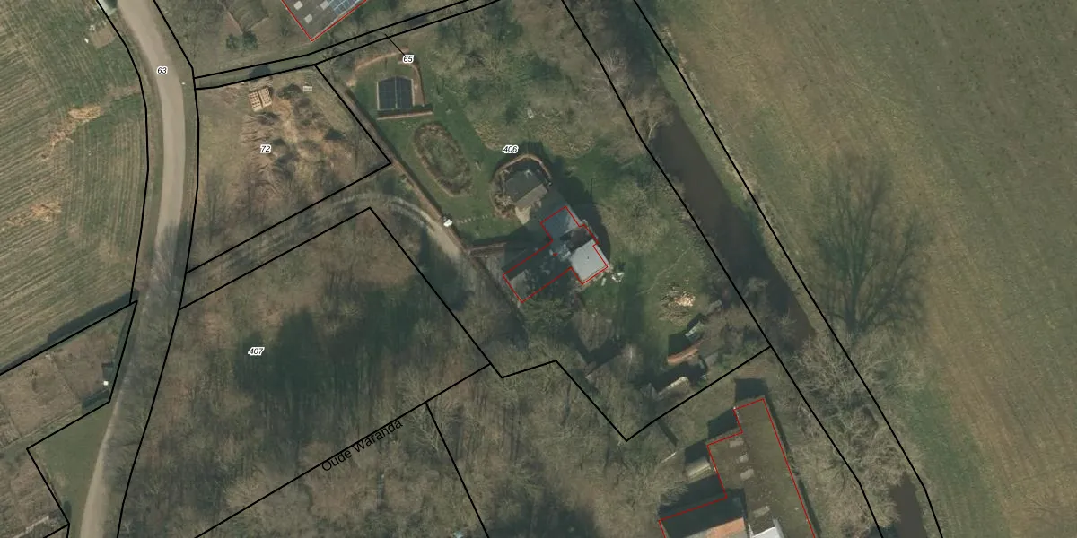 Het perceel waarop Oude Waranda 4 staat heeft een oppervlakte van 3905 m². Dit is een zeer groot perceel. De perceeloppervlakte wordt geregistreerd door het Kadaster. Gedetailleerde informatie over de maten van dit perceel kunt u vinden in het rapport Kadastrale kaart met maatvoering van Oude Waranda 4.