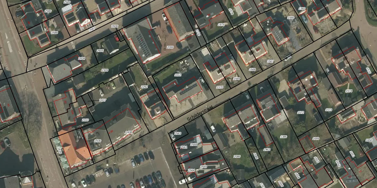 Het perceel waarop Schilderstraat 2-a staat heeft een oppervlakte van 625 m². Dit is een groot perceel. De perceeloppervlakte wordt geregistreerd door het Kadaster. Gedetailleerde informatie over de maten van dit perceel kunt u vinden in het rapport Kadastrale kaart met maatvoering van Schilderstraat 2-a.