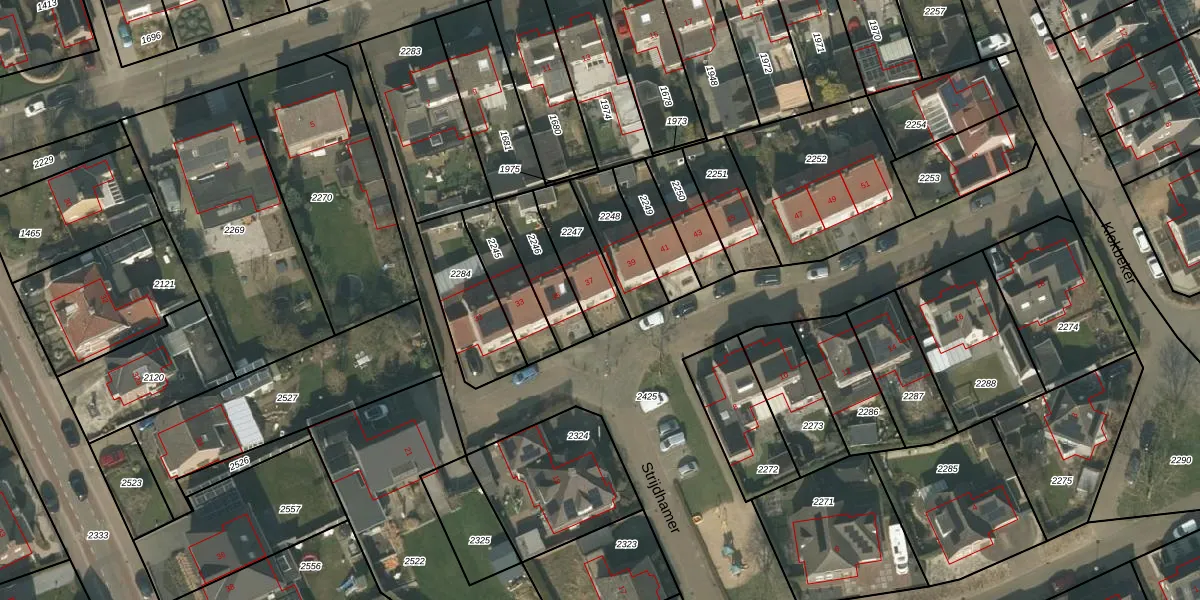 Strijdhamer 37 is gelegen op kadastraal perceel BMR00K2247. Deze kadastrale aanduiding is uniek en wordt gebruikt door het Kadaster om eigendomsrechten en andere zakelijke rechten vast te leggen. Het perceel maakt onderdeel uit van de kadastrale gemeente Boxmeer.