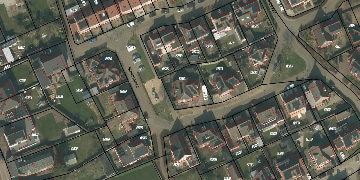 Het perceel waarop Strijdhamer 6 staat heeft een oppervlakte van 471 m². Dit is een groot perceel. De perceeloppervlakte wordt geregistreerd door het Kadaster. Gedetailleerde informatie over de maten van dit perceel kunt u vinden in het rapport Kadastrale kaart met maatvoering van Strijdhamer 6.