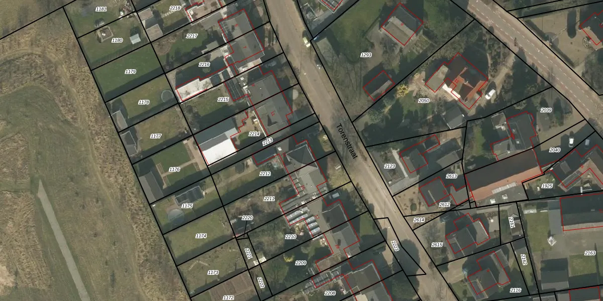 Het perceel waarop Torenstraat 13 staat heeft een oppervlakte van 455 m². Dit is een groot perceel. De perceeloppervlakte wordt geregistreerd door het Kadaster. Gedetailleerde informatie over de maten van dit perceel kunt u vinden in het rapport Kadastrale kaart met maatvoering van Torenstraat 13.