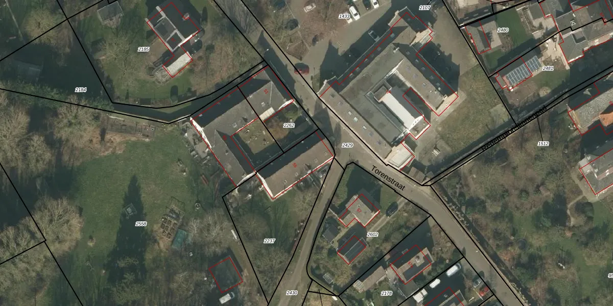 Het perceel waarop Torenstraat 55 staat heeft een oppervlakte van 970 m². Dit is een groot perceel. De perceeloppervlakte wordt geregistreerd door het Kadaster. Gedetailleerde informatie over de maten van dit perceel kunt u vinden in het rapport Kadastrale kaart met maatvoering van Torenstraat 55.