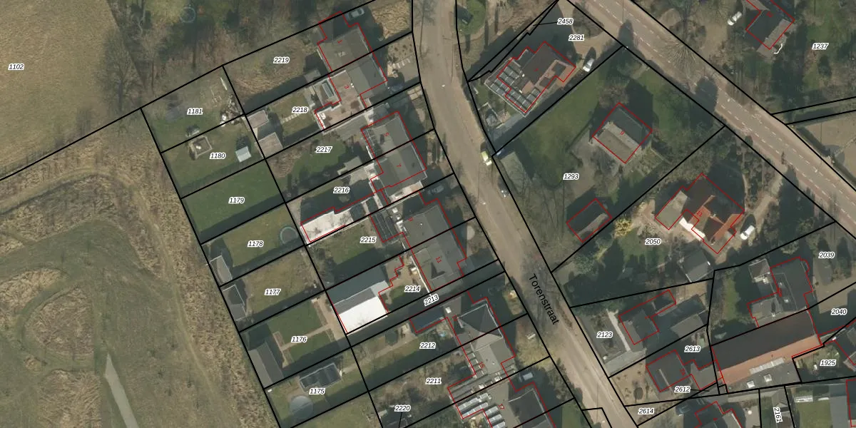 Torenstraat 9 is gelegen op kadastraal perceel BMR00K2215. Deze kadastrale aanduiding is uniek en wordt gebruikt door het Kadaster om eigendomsrechten en andere zakelijke rechten vast te leggen. Het perceel maakt onderdeel uit van de kadastrale gemeente Boxmeer.