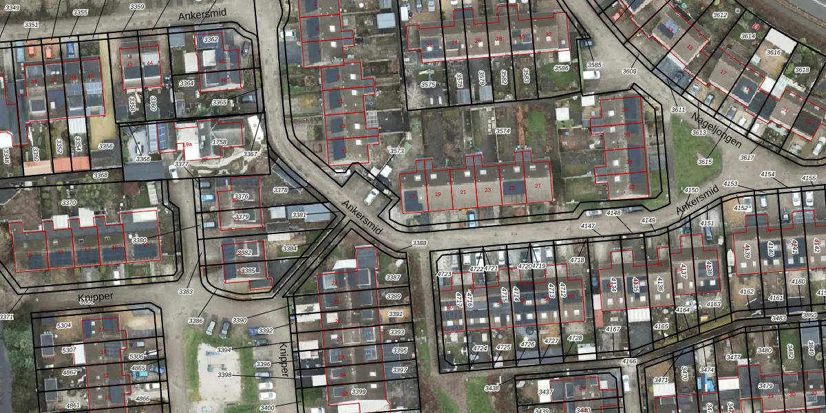 Het perceel waarop Ankersmid 17 staat heeft een oppervlakte van 3093 m². Dit is een zeer groot perceel. De perceeloppervlakte wordt geregistreerd door het Kadaster. Gedetailleerde informatie over de maten van dit perceel kunt u vinden in het rapport Kadastrale kaart met maatvoering van Ankersmid 17.
