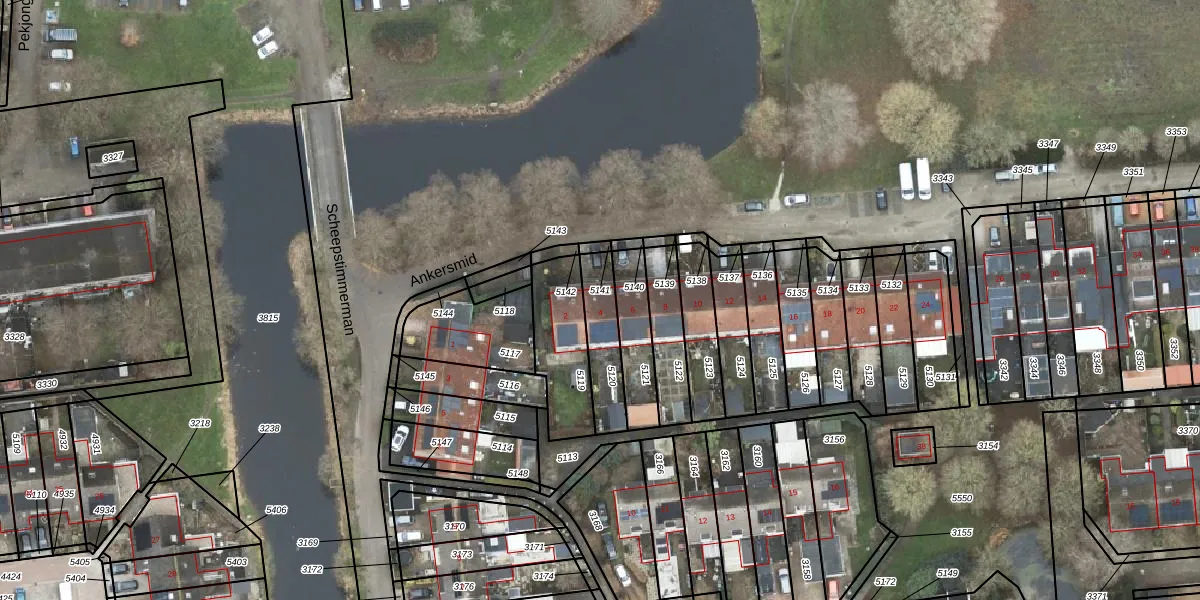 Gebruik de zoekbalk of klik op een perceel voor informatie over de adressen binnen dit perceel.