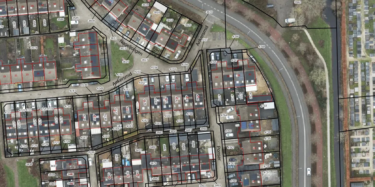 Het perceel waarop Ankersmid 80 staat heeft een oppervlakte van 158 m². Dit is een middelgroot perceel. De perceeloppervlakte wordt geregistreerd door het Kadaster. Gedetailleerde informatie over de maten van dit perceel kunt u vinden in het rapport Kadastrale kaart met maatvoering van Ankersmid 80.