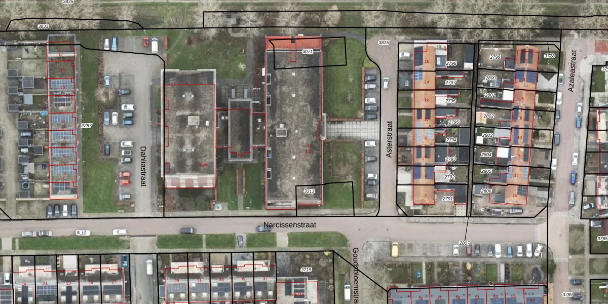 Het perceel waarop Asterstraat 15 staat heeft een oppervlakte van 9135 m². Dit is een zeer groot perceel. De perceeloppervlakte wordt geregistreerd door het Kadaster. Gedetailleerde informatie over de maten van dit perceel kunt u vinden in het rapport Kadastrale kaart met maatvoering van Asterstraat 15.