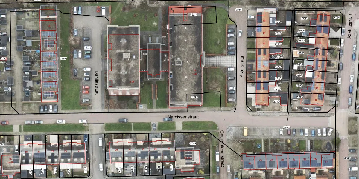 Het perceel waarop Asterstraat 5 staat heeft een oppervlakte van 9135 m². Dit is een zeer groot perceel. De perceeloppervlakte wordt geregistreerd door het Kadaster. Gedetailleerde informatie over de maten van dit perceel kunt u vinden in het rapport Kadastrale kaart met maatvoering van Asterstraat 5.