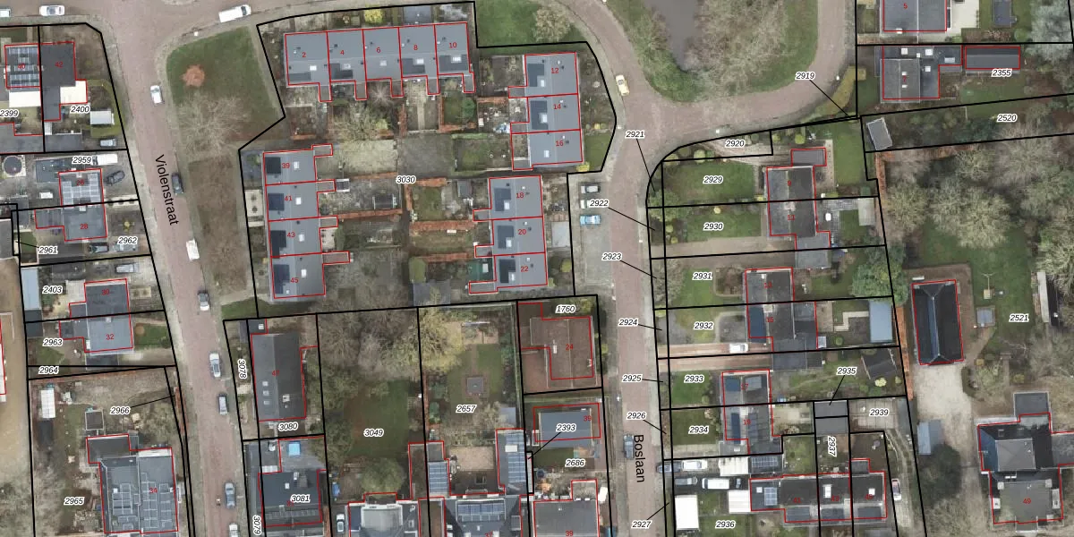 Het perceel waarop Boslaan 22 staat heeft een oppervlakte van 3262 m². Dit is een zeer groot perceel. De perceeloppervlakte wordt geregistreerd door het Kadaster. Gedetailleerde informatie over de maten van dit perceel kunt u vinden in het rapport Kadastrale kaart met maatvoering van Boslaan 22.