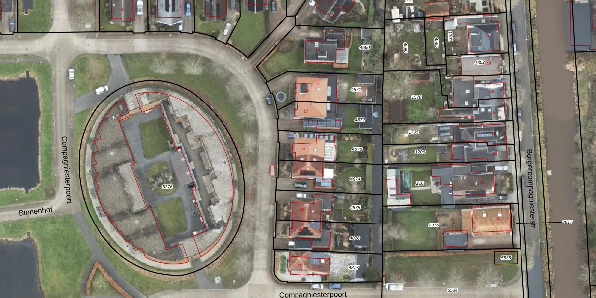 Het perceel waarop Buitensingel 19 staat heeft een oppervlakte van 350 m². Dit is een groot perceel. De perceeloppervlakte wordt geregistreerd door het Kadaster. Gedetailleerde informatie over de maten van dit perceel kunt u vinden in het rapport Kadastrale kaart met maatvoering van Buitensingel 19.