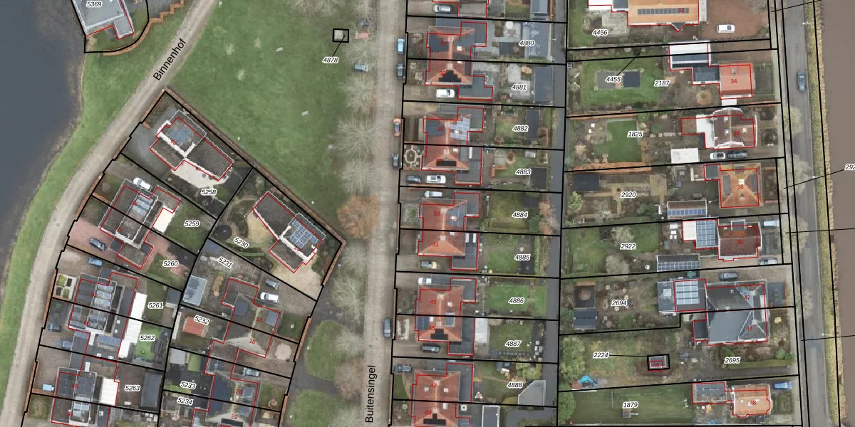 Het perceel waarop Buitensingel 39 staat heeft een oppervlakte van 380 m². Dit is een groot perceel. De perceeloppervlakte wordt geregistreerd door het Kadaster. Gedetailleerde informatie over de maten van dit perceel kunt u vinden in het rapport Kadastrale kaart met maatvoering van Buitensingel 39.