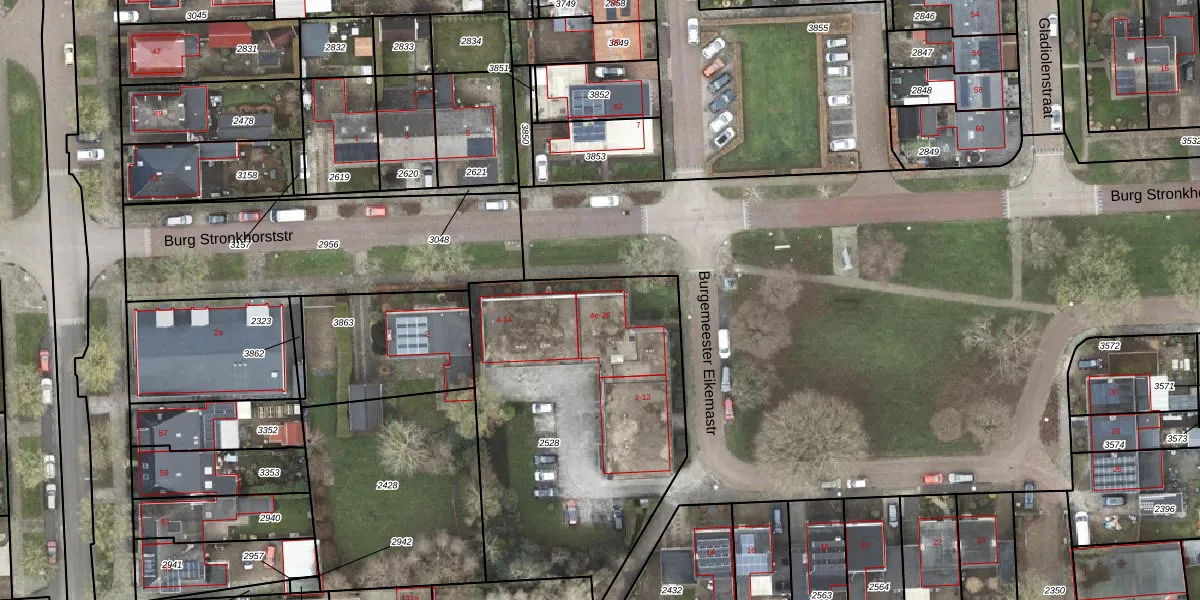 Het perceel waarop Burg Stronkhorststr 16 staat heeft een oppervlakte van 1603 m². Dit is een zeer groot perceel. De perceeloppervlakte wordt geregistreerd door het Kadaster. Gedetailleerde informatie over de maten van dit perceel kunt u vinden in het rapport Kadastrale kaart met maatvoering van Burg Stronkhorststr 16.