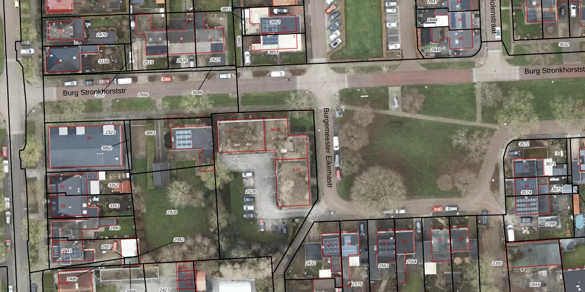 Het perceel waarop Burg Stronkhorststr 24 staat heeft een oppervlakte van 1603 m². Dit is een zeer groot perceel. De perceeloppervlakte wordt geregistreerd door het Kadaster. Gedetailleerde informatie over de maten van dit perceel kunt u vinden in het rapport Kadastrale kaart met maatvoering van Burg Stronkhorststr 24.