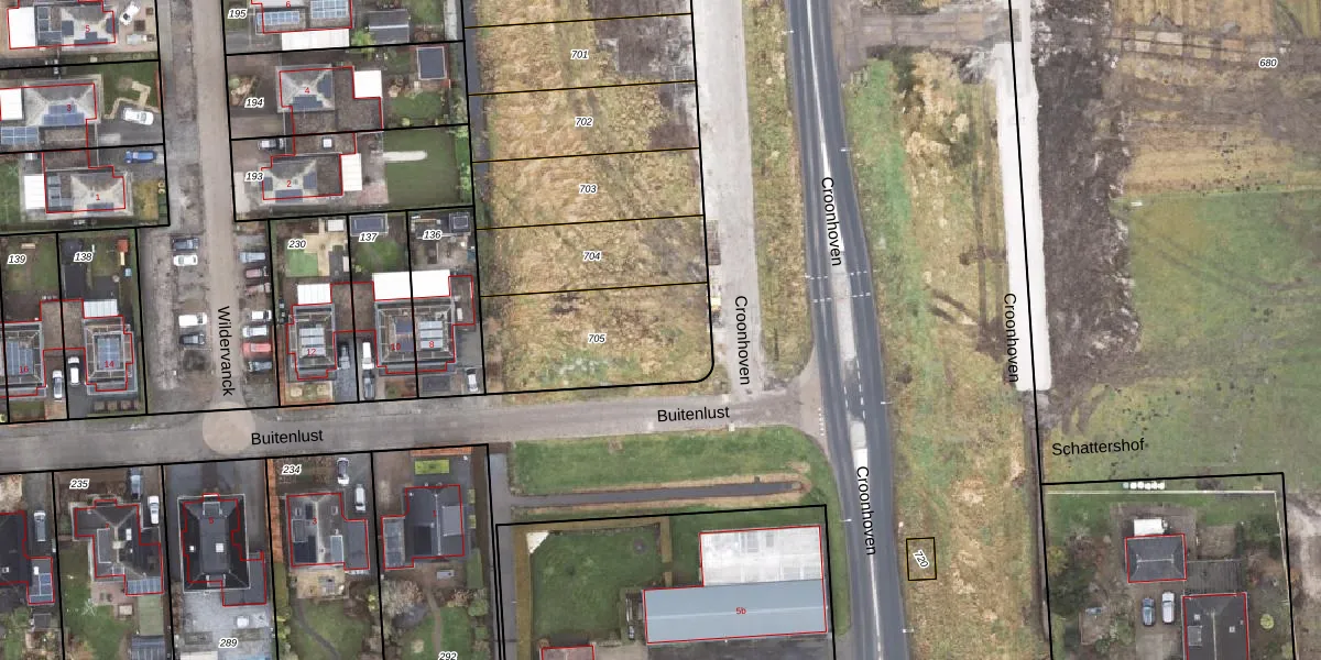 Het perceel waarop Croonhoven 1 staat heeft een oppervlakte van 514 m². Dit is een groot perceel. De perceeloppervlakte wordt geregistreerd door het Kadaster. Gedetailleerde informatie over de maten van dit perceel kunt u vinden in het rapport Kadastrale kaart met maatvoering van Croonhoven 1.