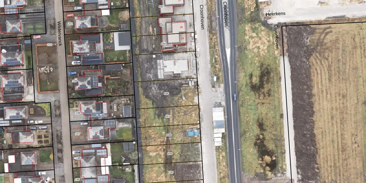 Het perceel waarop Croonhoven 19 staat heeft een oppervlakte van 512 m². Dit is een groot perceel. De perceeloppervlakte wordt geregistreerd door het Kadaster. Gedetailleerde informatie over de maten van dit perceel kunt u vinden in het rapport Kadastrale kaart met maatvoering van Croonhoven 19.