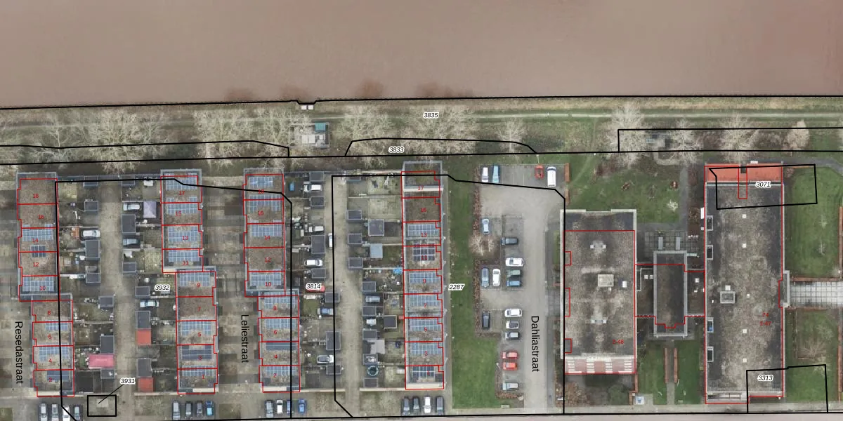 Het perceel waarop Dahliastraat 15 staat heeft een oppervlakte van 3020 m². Dit is een zeer groot perceel. De perceeloppervlakte wordt geregistreerd door het Kadaster. Gedetailleerde informatie over de maten van dit perceel kunt u vinden in het rapport Kadastrale kaart met maatvoering van Dahliastraat 15.