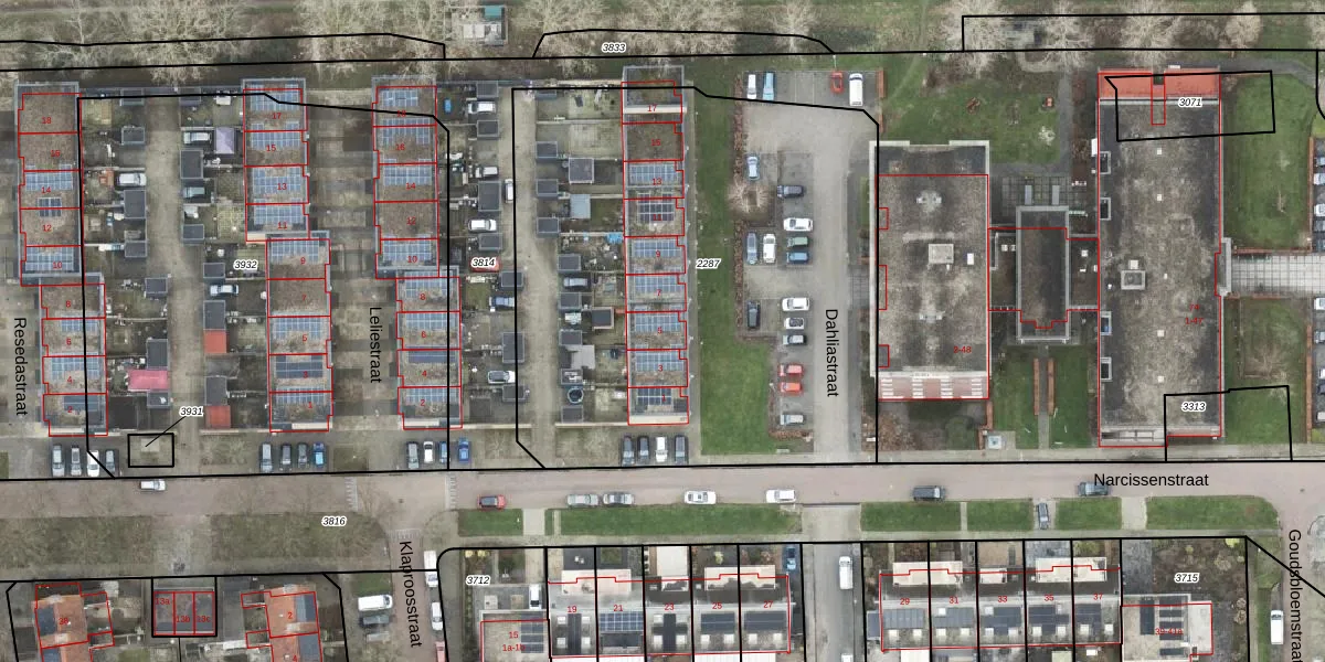Het perceel waarop Dahliastraat 5 staat heeft een oppervlakte van 3020 m². Dit is een zeer groot perceel. De perceeloppervlakte wordt geregistreerd door het Kadaster. Gedetailleerde informatie over de maten van dit perceel kunt u vinden in het rapport Kadastrale kaart met maatvoering van Dahliastraat 5.